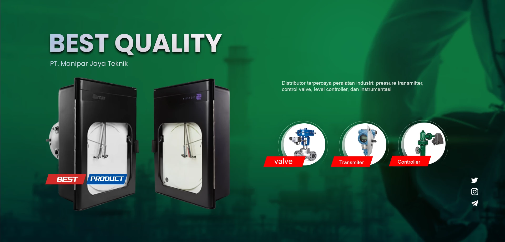 Distributor terpercaya peralatan industri: pressure transmitter, control valve, level controller, dan instrumentasi